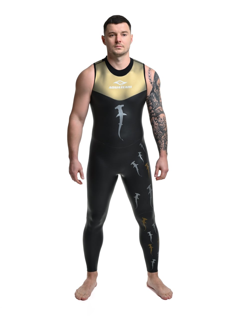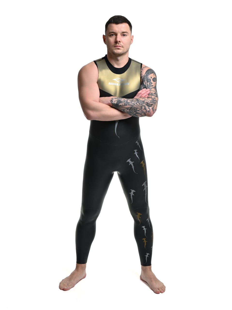 Анатомичный крой костюма обеспечивает идеальную посадку и свободу движений, позволяя вам сосредоточиться на тренировках без каких-либо ограничений. Воротник-стойка обеспечивает дополнительную защиту, а проймы, обработанные эластичной лентой, минимизируют попадание воды, что делает каждую тренировку более комфортной.